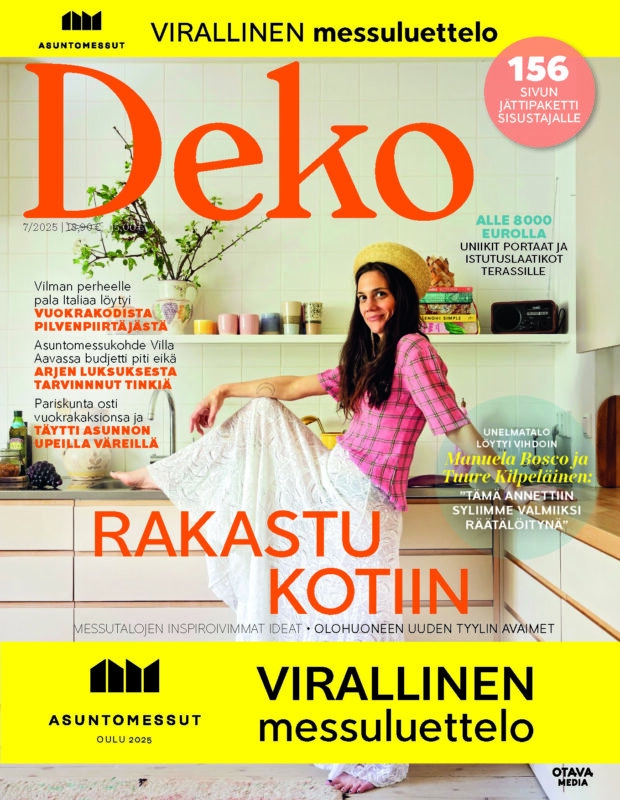 ”Dekon asuntomessunumero on vuoden kohokohtia koota. Messutalot edustavat aina näkymää suomalaisiin asumisen unelmiin, mikä on sisustuslehdelle mitä inspiroivin asetelma. Tämän vuoden rakentajatarinoissa kiinnostivat ajatukset muun muassa ekologisesta elämäntavasta ja kompaktista asumisesta. Messujen sijainti lähellä Tamperetta kertoo ehkä kaipuusta urbaaniin pientaloarkeen”, kertoo Dekon toimituspäällikkö Aino Loikkanen.