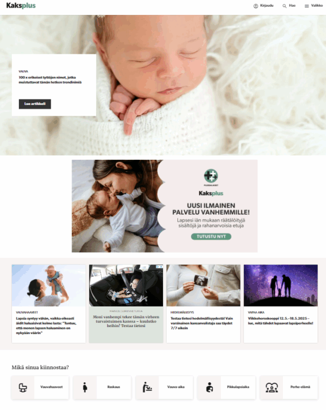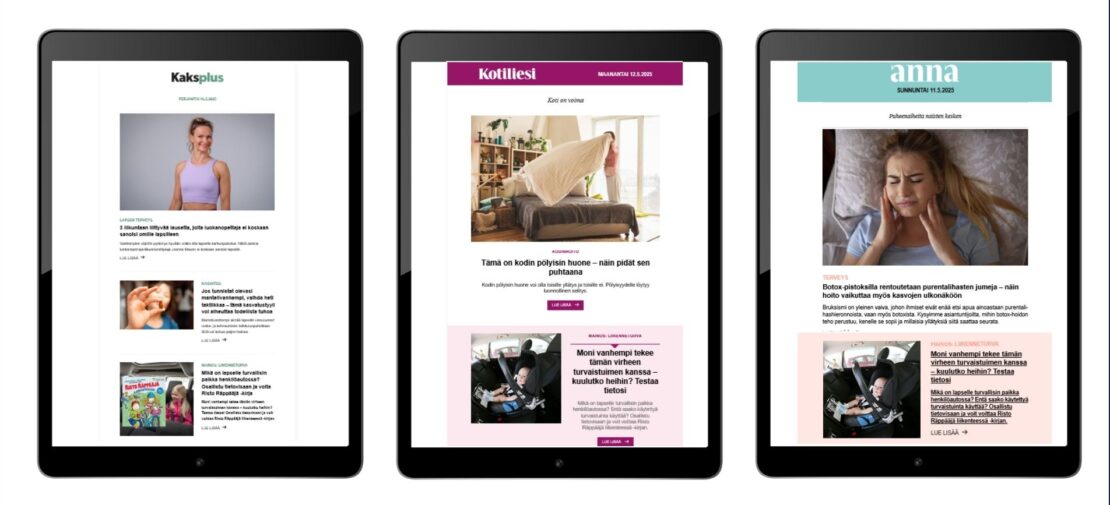 The quiz gained strong visibility on the front pages and native placements of Kaksplus, Kotiliesi, and Anna, alongside editorial content. It was also featured weekly in newsletters and actively promoted on social media — including Facebook posts and Instagram Stories.